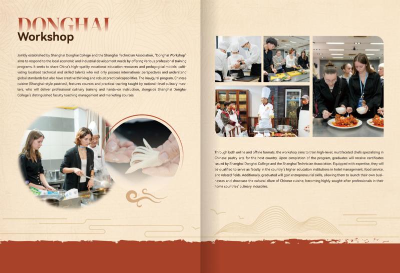 首批“东海工坊”为中华餐饮(海派面点)项目,由东海学院携手上海市技师协会共同举办,国家级烹饪大师担纲讲授餐饮专业课程及操作、东海学院优秀教师讲授管理营销类专业课程,通过线上或线下教育形式为所在国培训一流复合型中华面点专业厨师。学员学成后将获得上海东海学院、上海市技师协会相关证书,可担任本国高校酒店管理、餐饮食品等专业师资,或自主创业、在本国一展身手,完美展示中华餐饮的文化魅力,成为本国相关行业深受欢迎的专业人才。与此同时,“东海工坊”将基于当地经济产业发展的人才需求,提供更多各类专业培训项目,输出我国优质职业教育资源和教学模式,培养既具备国际视野、通晓国际规则,又具有创造性思维、实践和创新能力的本土化技术技能人才。