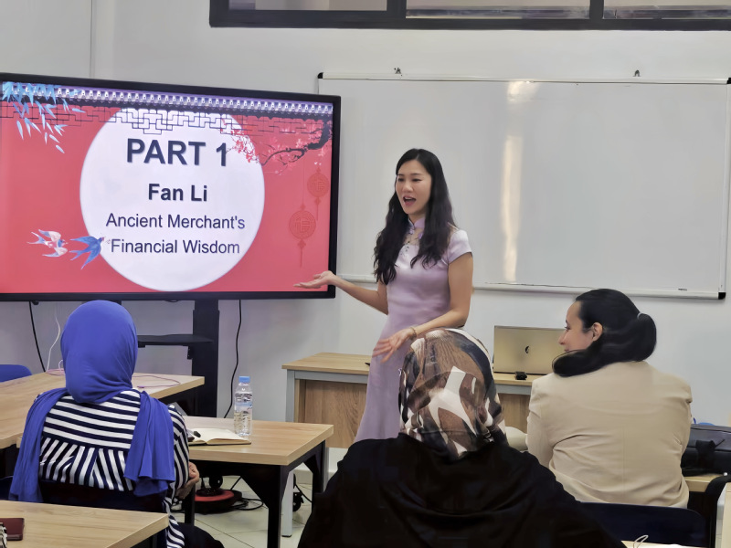 在专业标准解读基础上,三位老师还围绕专业开展了拓展主题讲座。孙博璠以专业通识教育为主题,从古代丝绸之路到现代一带一路倡议,主要介绍了中国文化与经济现状。她重点讲解了中国经济结构和财税体系,特别是电子发票和数字化税务系统的应用,通过对比中摩两国会计制度与税法体系的异同,引发了深入的专业讨论。