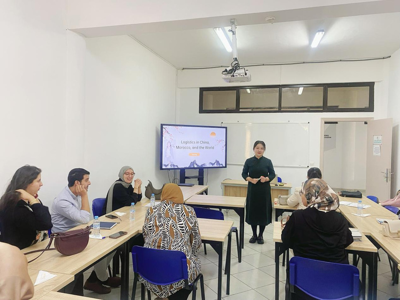 培训现场,三位教师以扎实的专业素养和流畅的英语表达,向当地教师展示了中国职业教育的特色与成果。培训内容首先围绕《财务管理》和《现代物流管理》两个专业的标准展开,由会计系主任刘舒叶和国际物流系主任高静就各自专业,系统介绍了专业标准的总体架构、课程体系设计原理及专业课程设置的核心理念,为摩洛哥教师后续教学实践提供了清晰指引。