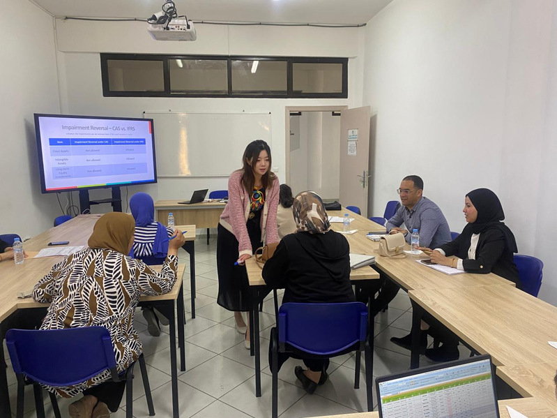 在专业标准解读基础上,三位老师还围绕专业开展了拓展主题讲座。孙博璠以专业通识教育为主题,从古代丝绸之路到现代一带一路倡议,主要介绍了中国文化与经济现状。她重点讲解了中国经济结构和财税体系,特别是电子发票和数字化税务系统的应用,通过对比中摩两国会计制度与税法体系的异同,引发了深入的专业讨论。